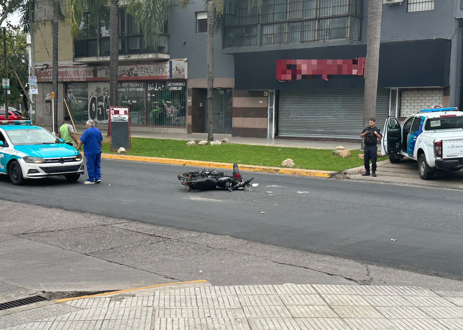 Hasta la escena acudió el móvil N°26 de la Unidad de Coordinación Municipal (UCM), a cargo del doctor Cerrudo, quien asistió al conductor de la motocicleta.